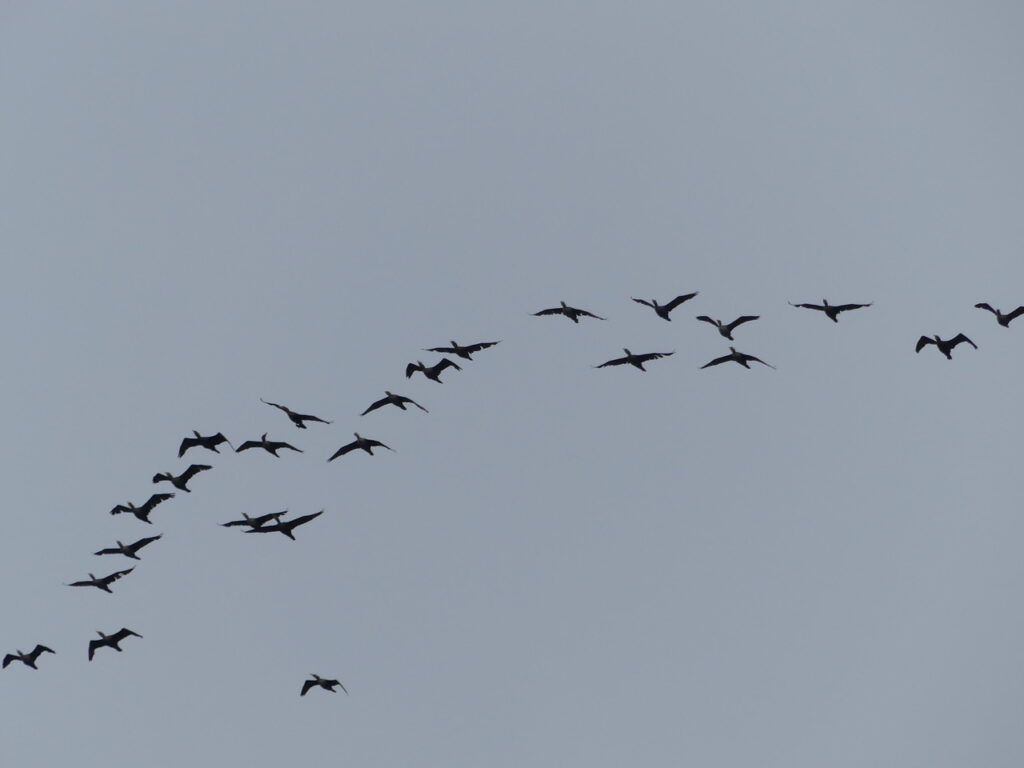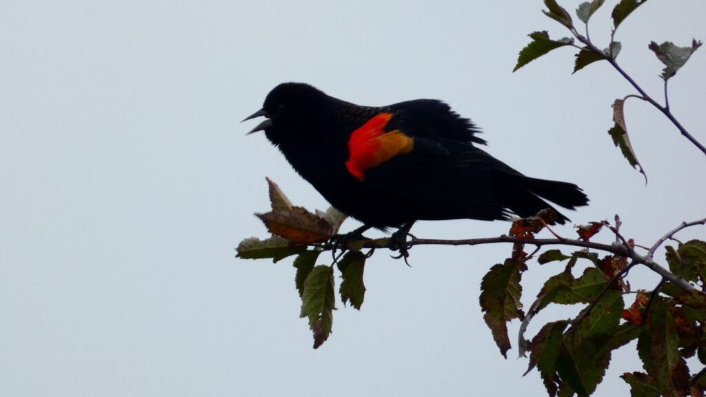 The September 28th birding field trip, led by Jan Lowcock and John Chandler, at Iona Beach Regional Park began with light winds and cloud cover, slowly breaking way to sunny skies by the trip’s end. A group of 13 set out from the parking lot, scoured the outer pond and southern inner pond from the walkway. The ponds held a few species of dabbling ducks, Pied- billed Grebes and American Coots. Three large flocks of Double-crested Cormorants flew overhead, and we had full vocal, flying and diving performances from Caspian Terns. The marsh area and woodlots were relatively quiet with chirps and fleeting glimpses of 3 species of sparrows plus calls from ever reliable Spotted Towhees. Spotting scopes were useful to see a flock of 15 plus Capsian Terns congregated on the north side of the Fraser. The sun emerged and we finished at the beach to catch the incoming tide. In the quest for “one more species” a Peregrine Falcon zoomed in and perched, a perfect finale. Post walk, a small group paid a visit to the Iona Island Bird Observatory banding station staffed and operated by Wild Research. Rae Xamin, bander in charge, was happy to show us a juvenile Song Sparrow prior to its release.